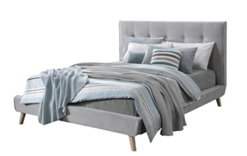 LEIA DOUBLE DARK GREY FABRIC BED WITH OAK TIMBER BASE $749-00