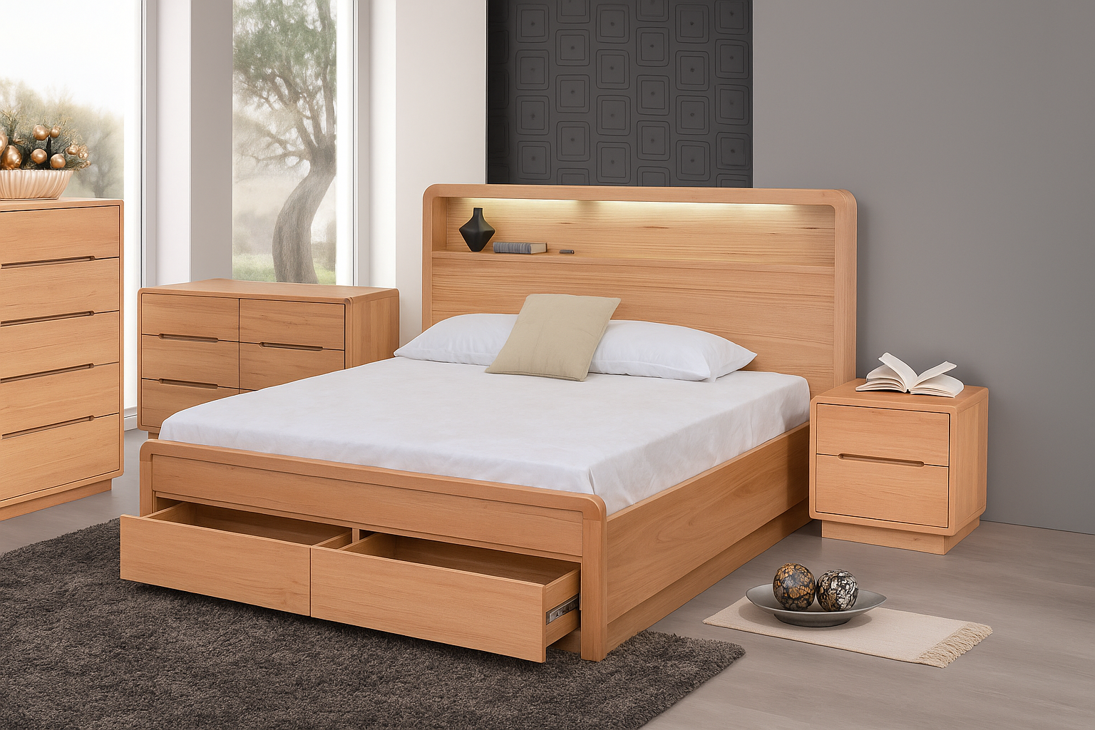 BLOCK NATURAL ACACIA TIMBER BEDROOM RANGE WITH BUTTERSCOTCH FINISH
