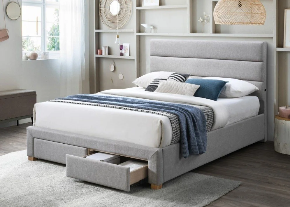 LEXI TWO DRAWER BED IN GREY FABRIC ON SALE