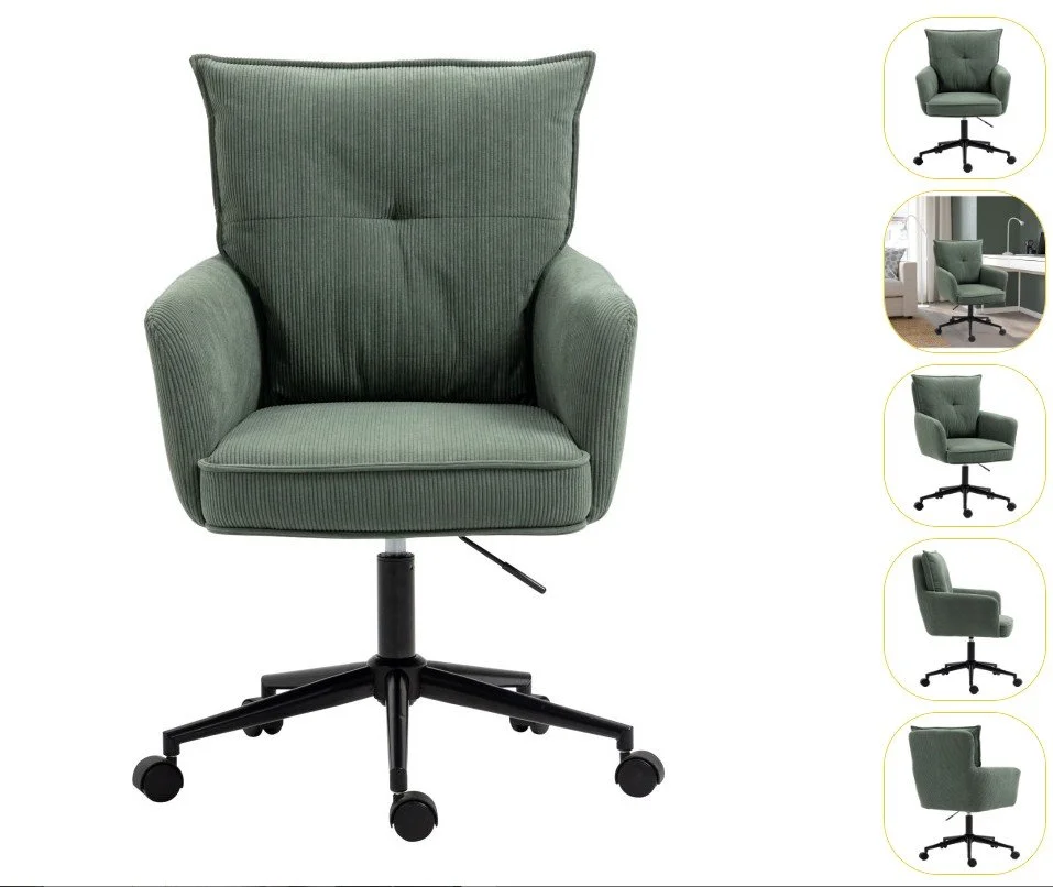 ROWAN OFFICE CHAIR WITH ADJUSTABLE HEIGHT IN CORD FABRIC GREEN OR GREY $399-00